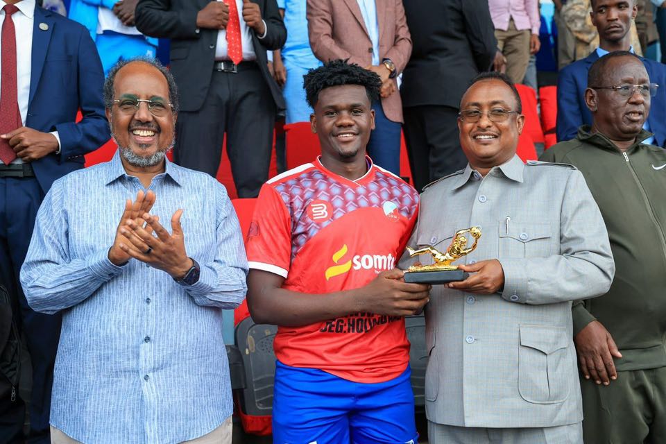 Ugu dambeyn, Madaxweyne Xasan Sheekh Maxamuud ayaa gudoonsiiyay koobka iyo biladaha ciyaartoyda labada koox.