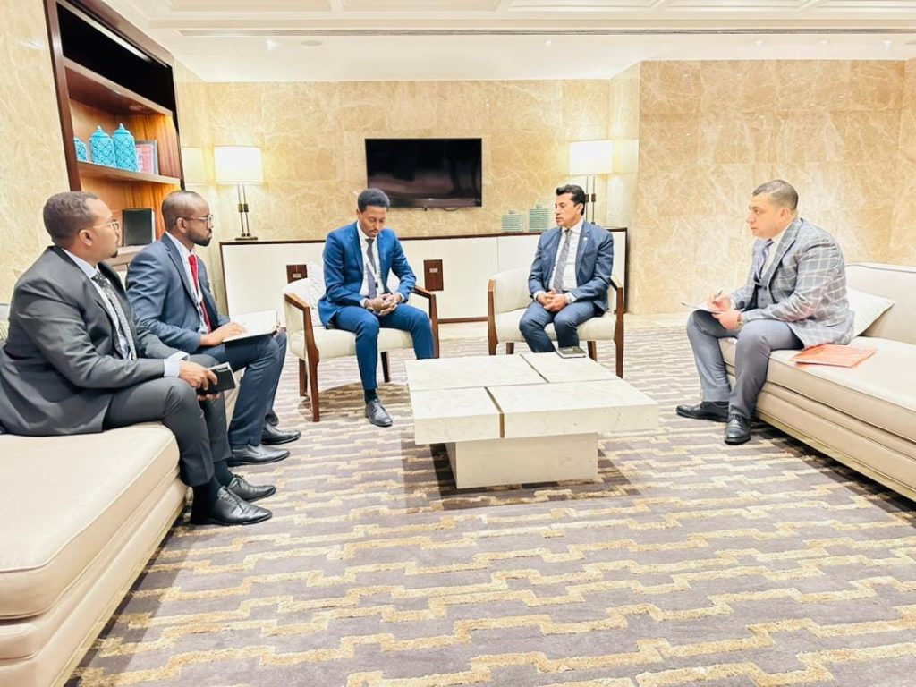 Wasiirka wasaaradda dhallinyarada iyo cayaaraha XFS Mudane Xil Maxamed Barre Maxamuud oo ka qayb-galaya isaga iyo wafdi uu hogaaminayo shirka 46-aad ee wasiirrada Dhallinyarada iyo cayaaraha wadamada Jaamacadda Carabta oo ka furmay magaalada Jeddah ee Boqortooyada Sucuudi Carabiya ayaa shir doceed muhiim ah la yeeshay dhiggiisa Masar Dr Ashraf Subxi oo ah xilligan madaxa golaha wasiirrada dhallinyarada iyo cayaaraha ee dalalka Jaamacadda Carabta. Wasiir Maxamed Barre Maxamuud iyo Wasiirka dhallinyarada iyo cayaaraha Masar Dr Ashraf Subxi ayaa ka wada hadlay iskaashi dhex mara labada wasaaraddood ee dhinacyada kobcinta iyo tababarrada dhallinyarada iyo horumarinta garoomada cayaaraha, iyadoo dowladda Masar ay ka tageerayso wasaaradda dhallinyarada iyo cayaaraha Soomaaliya tababaridda dhallinyaro la barayo xirfado kala duwan iyo koorsooyin gaa-gaaban. Kulanka labada wasiir waxaa ka qaybgelay agaasimaha guud ee Wasaaradda dhallinyarada iyo cayaaraha Mudane Cabdiraxiim Warsame Diiriye iyo saraakiil kale oo Wasaaradda Dhallinyarada iyo Isboortiga JFS ka tirsan. Wasiir Maxamed Barre Maxamuud ayaa maanta khudbad ka jeedin doona shirka Wasiirrada dhalinyarada iyo cayaaraha ee wadamada Carabta oo ka furmay magaalada Jeddah ee Boqortooyada Sucuudi Carabiya.